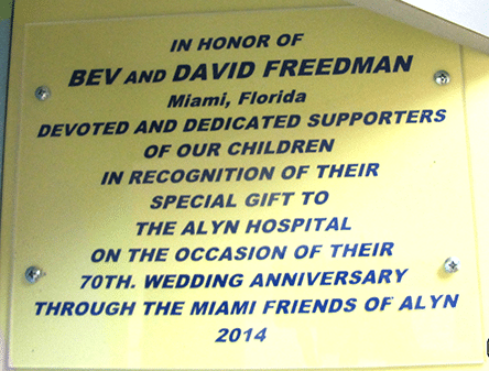 In a moving tribute to Beverly, Brenda Hirsch expressed it best: “With my hand on my heart, I can honestly say that if you had not taken on the Presidency of the Miami Friends of ALYN when you did, it would have ceased to exist many a decade ago. It was only thanks to your love of and dedication and devotion to our children and tireless energy which gave such vital exposure to ALYN Hospital: our children and work in Miami and beyond.